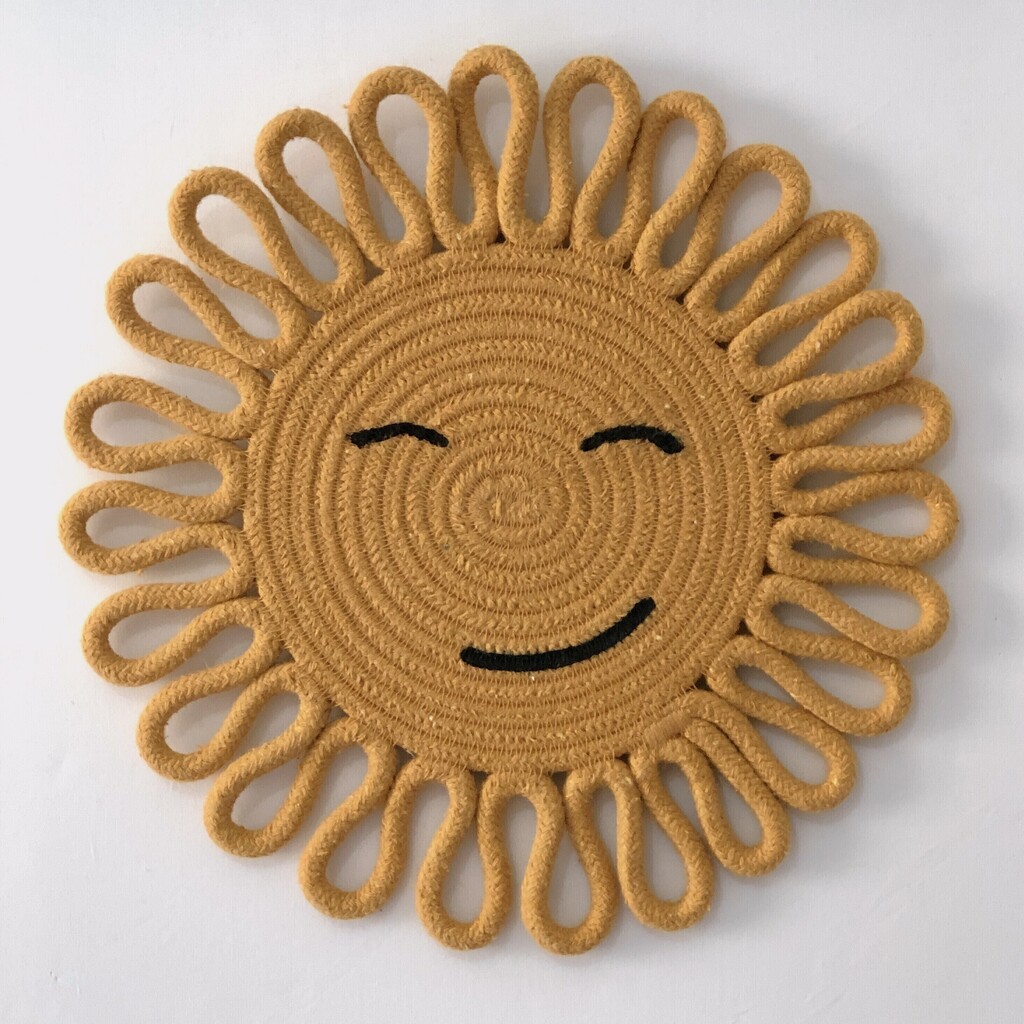 Encantador e vibrante, o sol de parede é criado manualmente em corda 100% algodão, garantindo uma peça durável e com acabamento delicado. Com olhinhos e um sorriso amigável, traz um toque lúdico e acolhedor para o ambiente.